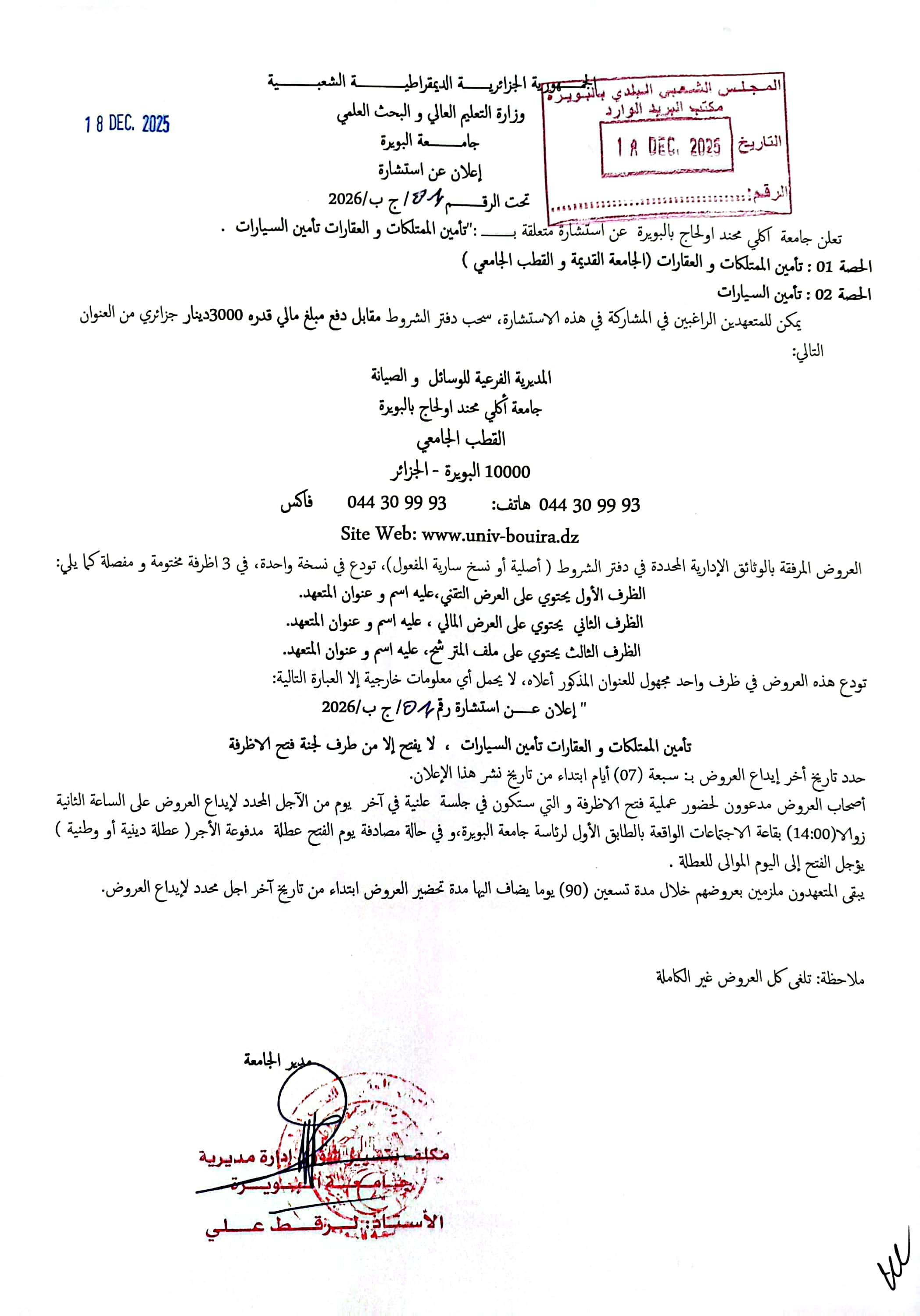 Une consultation a été lancée en vue de retenir un prestataire pour l’assurance du patrimoine de l’université au titre de l’année 2026 ….. cliquez plus de détails