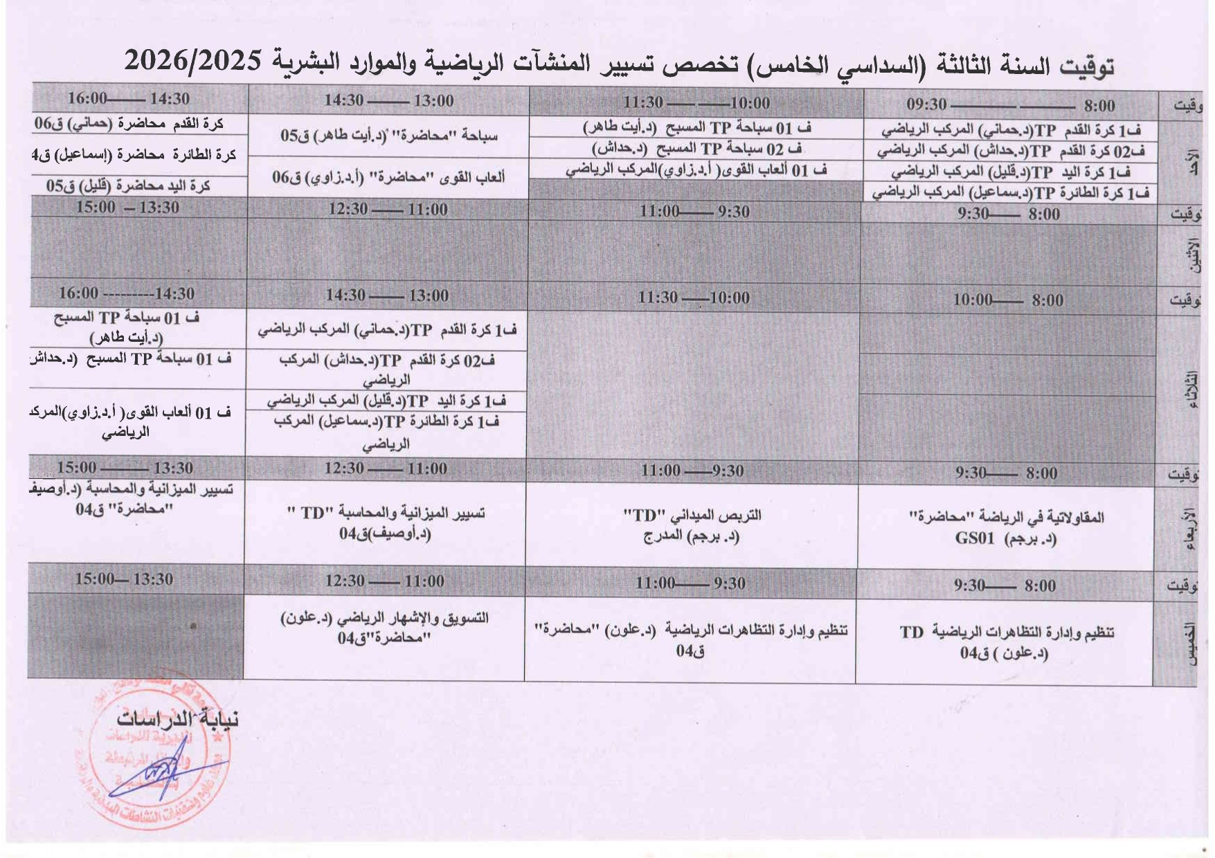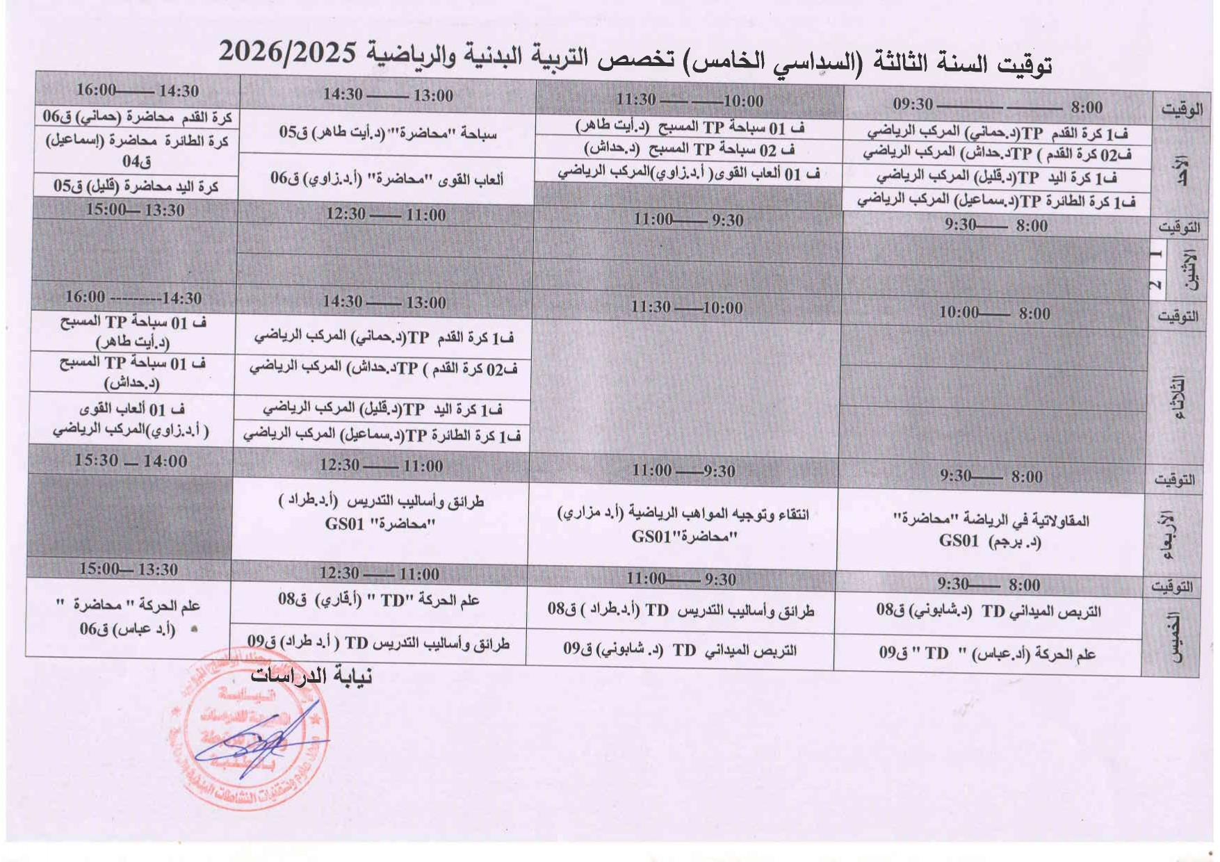 جداول الامتحانات