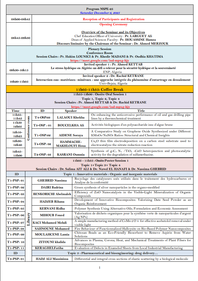 Please fill out the registration form and send it together with the abstract template by email to nspe.25@univ-bouira.dz.