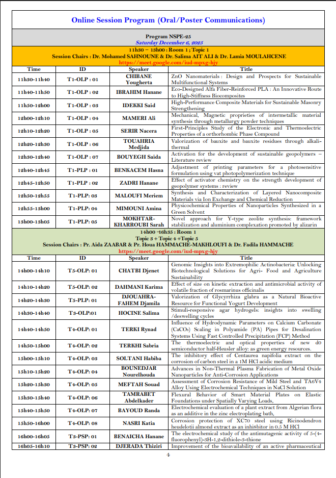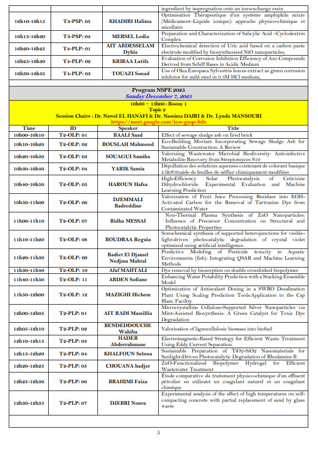 Please complete the abstract template and return it with the registration form by email to nspe.25@univ-bouira.dz.