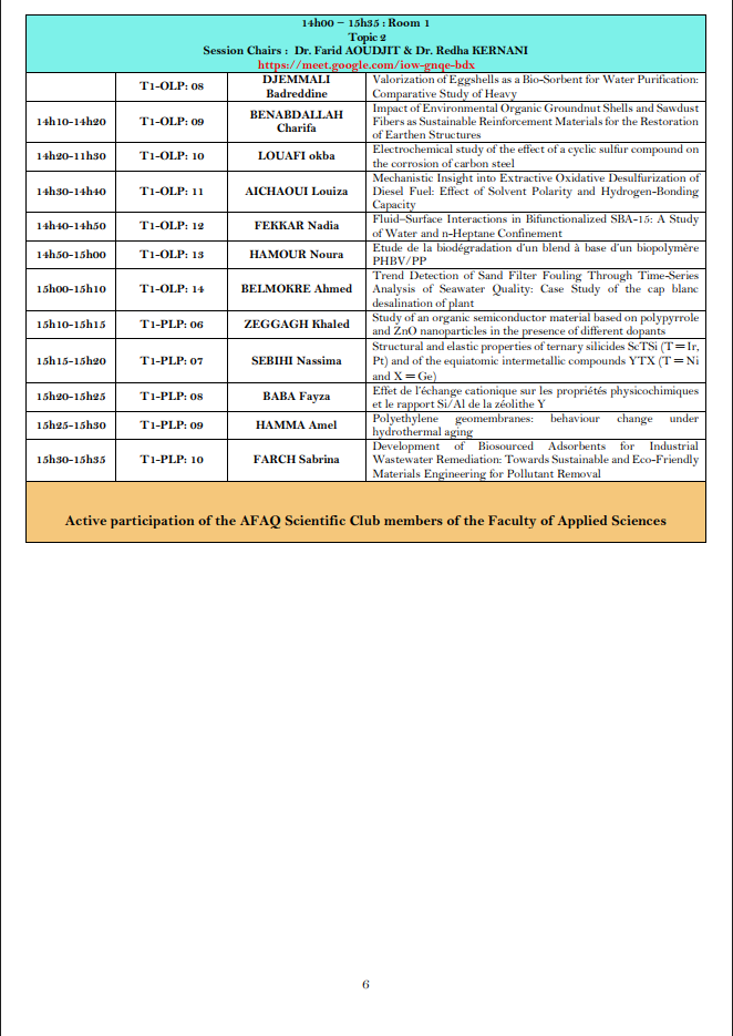 Pr. KERCHICH Yacine Member of the Scientific Committee USTHB / Algeria |